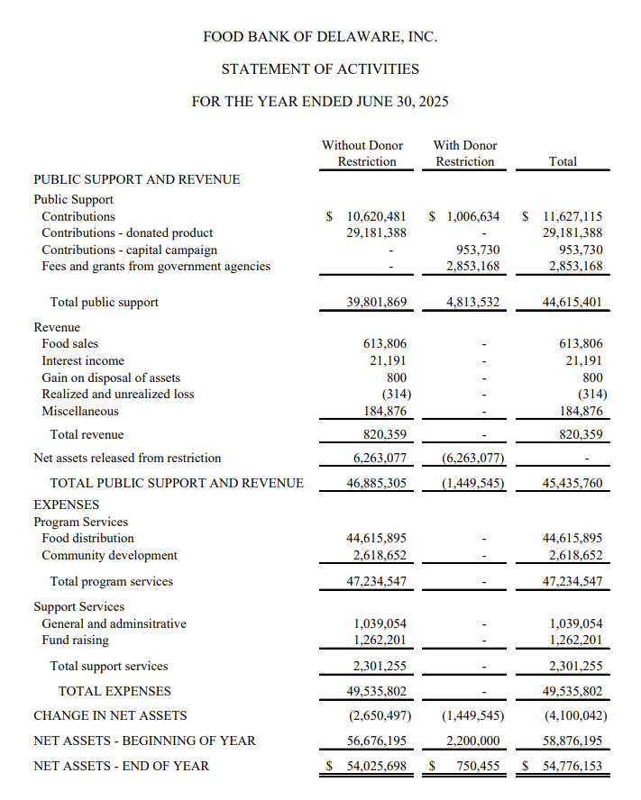 The Food Bank of Delaware’s success is dependent on the generosity of our funders.